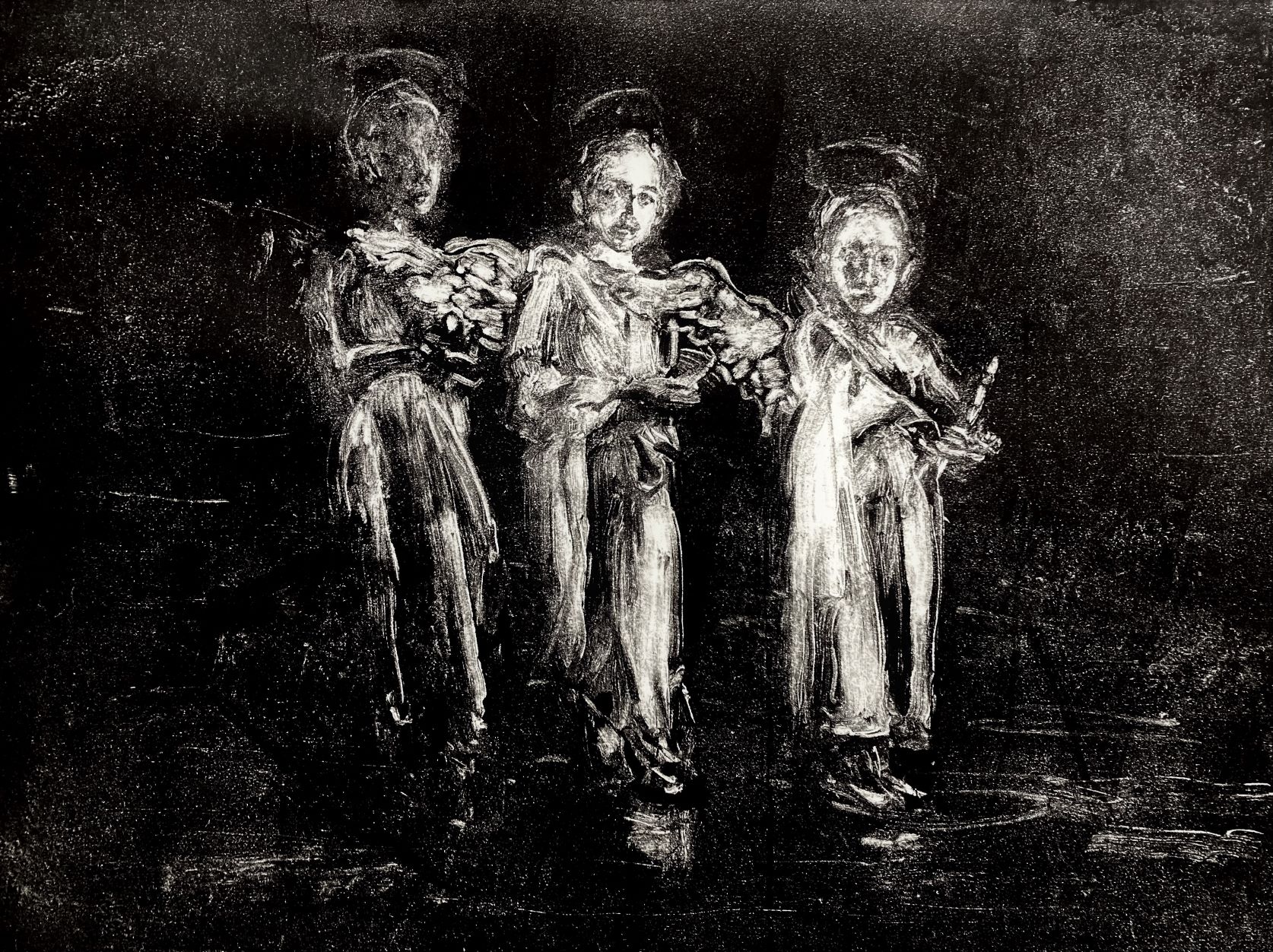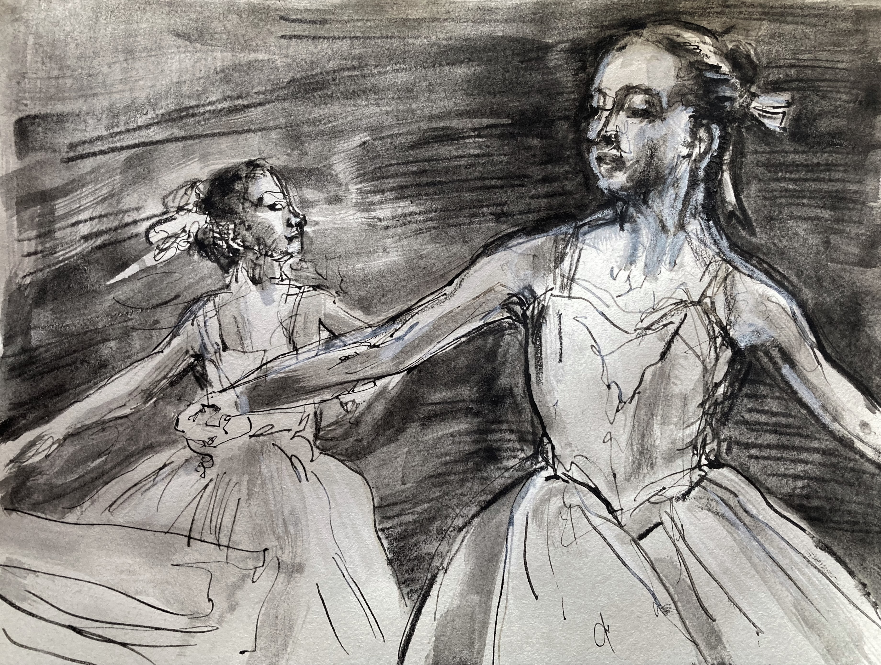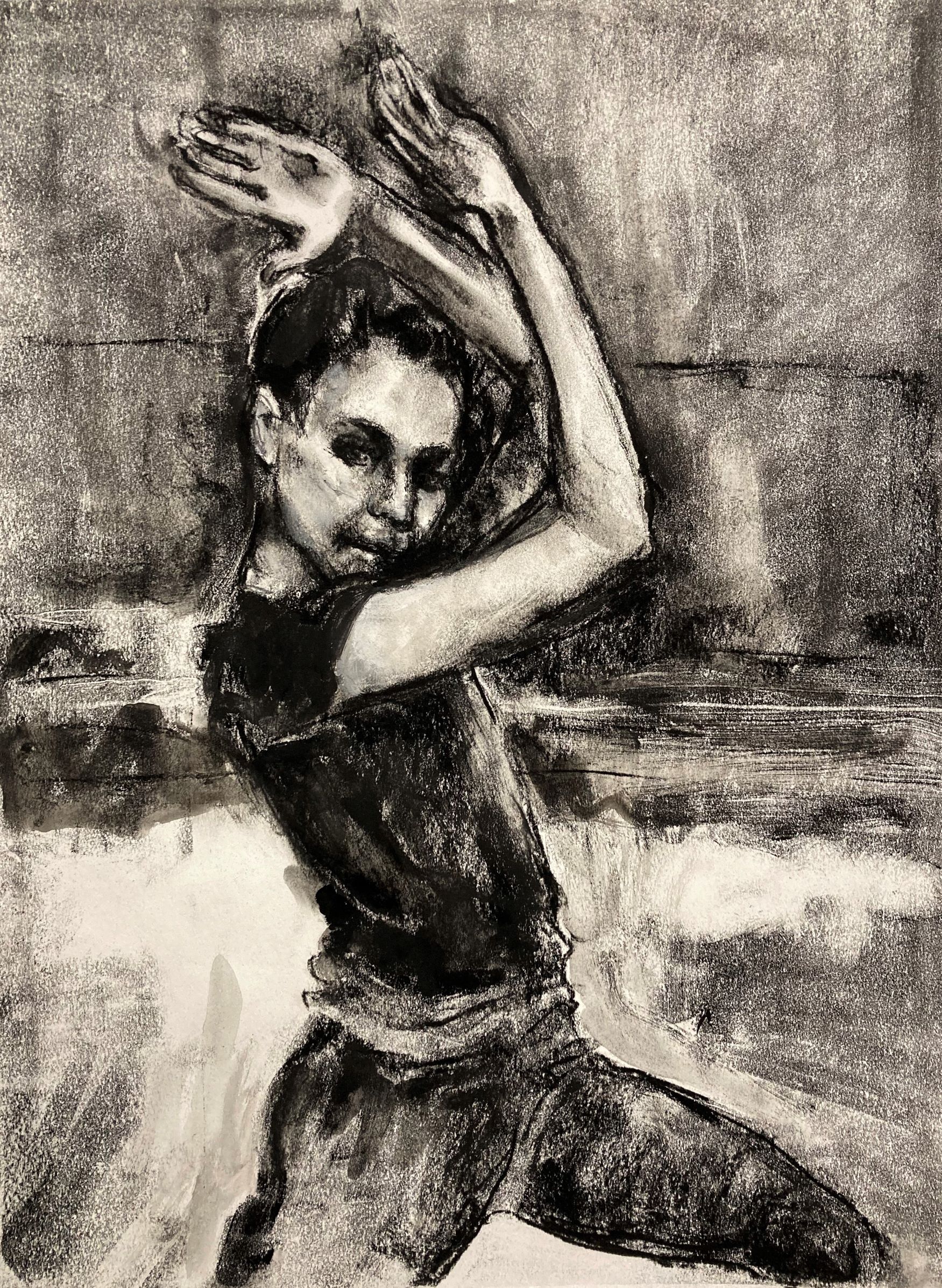 charcoal over monotype print