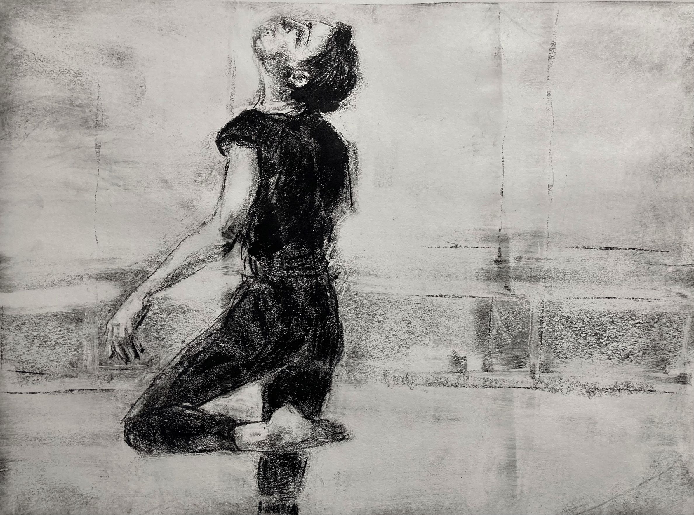 Charcoal on monotype print